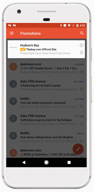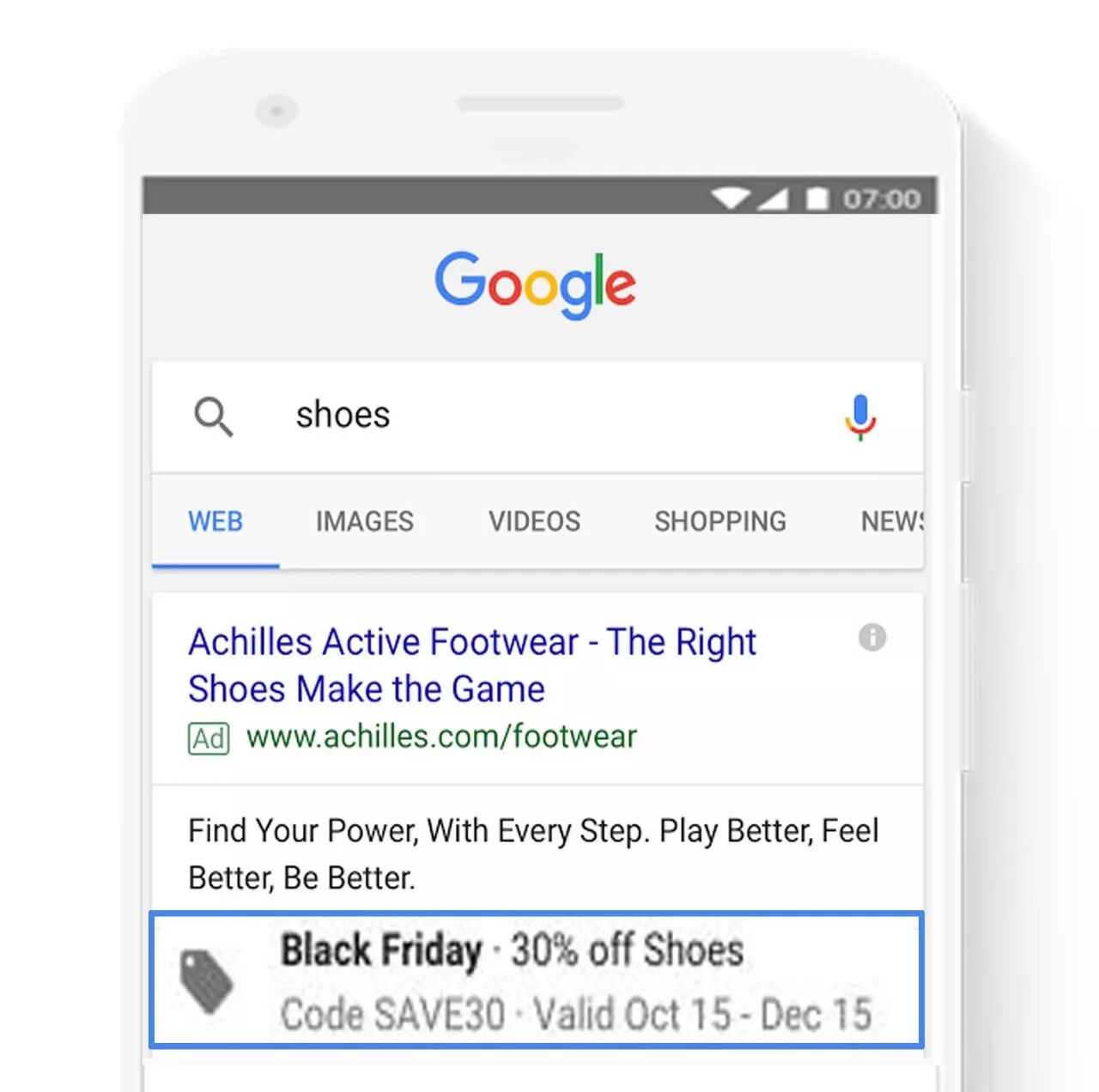 附加促销信息让客户买不停 年底或节假日是促销的好时机,促销活动准备就绪,如何让你的促销信息优先被看到,并吸引住客户呢?客户想买东西,都会直接搜索,在搜索结果中直接显示促销信息就是抢占先机。 上图中底部30% off Shoes部分,就是新AdWords推出的附加促销信息,折扣信息独立出现在搜索结果下方,非常抓眼球。 为了给你省时间,你要做的就是填写折扣力度,比如打折50%,然后加上优惠码和有效期,选好每年你要推广的节假日,AdWords就帮你自动生成这段信息。当用户点击时,就会直接转到促销所对应的折扣区。 节假日是使用此功能的最佳时机。什么时候显示、怎样显示、在哪些客户端显示都听你的:你可以选择在特定的促销季范围内显示,或指定一天的某个时段。 以上是AdWords已经预设好的促销时段,选择你想要的即可 Google小贴士 附加信息简单说,就是在广告下方加点让客户眼前一亮的内容,比如致电按钮、产品系列分类、折扣信息。想要学习更多“附加信息”的内容,请【点击这里】哦。 Gmail广告再营销力Max 以前访问过你的网站,浏览信息或注册过的顾客,虽然没有下单,但依然是最有希望的潜在客户,将广告内容投放到这部分顾客面前,转化率会非常高。 此前,这一功能只能应用于Google搜索、展示广告网络中,喜大普奔的是:在新的AdWords中,这一逆天强大的再营销功能已经登录Gmail了!直达邮箱,效果更好! 如图,光顾过女装网站的顾客,会在自己的收件箱中收到AdWords自动推送的促销信息,外观和风格与使用者一开始看到的Gmail收件箱一致,只要点一下广告,就可以展开广告并查看详情。 丰富的图文交互式Gmail广告给使用者提供更好的访问体验 Google小贴士 再营销就是帮你找回失之交臂的客户。比如说,当客户访问过你的网站,但是什么都没买就离开了,后续这些客户在搜索、浏览其他网站时,都能看到你的广告。 轻松测试不同广告效果 在广告语中加入“节日快乐”,把“马上订购”改成“限时优惠”,同一系列广告用不同的广告语,广告效果会有怎样的不同?这个时候,就让新AdWords中的“广告变体”来回答你的疑问。 利用广告变体,你就能弄懂客户的喜好。比如上图中分别测试了四种变体的效果,第一种在标题中体现品牌,点击通过率是23%、在标题中体现价格,点击通过率最高,有35%、加入“免运”或者“打电话订购”的反而点击率不高。因此你就应该使用点击率高的广告语,并在折扣方向做更多变体。 这个功能将为你省时省力,只需要轻松点击几下,AdWords帮你自动修改所有产品线和上千广告内容更新,自动测试广告效果,然后告诉你哪个最有效。 “优化建议”给出锦囊妙计 我的广告系列怎么改进?想要一些切实且详细的建议吗?“优化建议”就能为你提供这样的帮助。AdWords根据你的广告表现,专门为你定制了广告优化锦囊妙计。 优化建议举例:添加否定关键字,这样能够避免不相关搜索,为你省钱。 建议添加新的相关关键字,以覆盖更多在 Google 上进行搜索的潜在客户。 上传客户列表进行再营销,这样能够提高转化率。 你可以选择采纳、跟踪效果和关闭建议,主动权都在你的手中,而你能获得最“机智”的金玉良言。 不少客户认为“优化建议”这项功能对他们的业务促进作用很大,Mindshare的付费搜索客户总监Amy Perkins说: 优化建议让我们迅速找到所有需要优化的地方,并且预测了优化成本、会带来的流量和在不同市场中能够取得的效果,而我们要做的只是轻轻点击一下。 橱窗广告展现品牌魔力 客户在网上搜索的关键词大多比较宽泛,比如“运动服装”或者“客厅家具”。他们还没明确目标,这个时候如果看到更生动的图和场景,会大大激起消费兴趣。橱窗购物广告就是这个利器,让客户更快被搜索结果吸引,从而作出购买决定。 如上图所示,访问者搜索“灯具”,图文并茂的橱窗购物广告就出现了,很难不注意到它。只要访问者点击,广告就会展开,展开后的广告页面包括了你的广告标题、标题大图片、网址、产品描述和产品陈列都包括在内,信息非常全面。 就和实体店面橱窗陈列一样,你可以自己控制在橱窗购物广告里展示哪些产品,我们建议突出展示畅销产品或时令产品。注意哦,每个广告组只能投放一组橱窗购物广告。 这里要强调下良心的收费规则,橱窗购物广告出现和展示都不收费,只有在人们展开你的广告,然后在该广告上停留10秒或者在10秒之内就点击你的按钮时,系统才会收取费用。